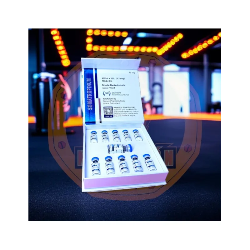 Somatropine 100 UI Signum. Hormone de croissance recombinante pour la croissance anabolique. La somatropine est une forme d'hormone de croissance humaine. L'hormone de croissance humaine est importante dans l'organisme pour la croissance des os et des muscles.